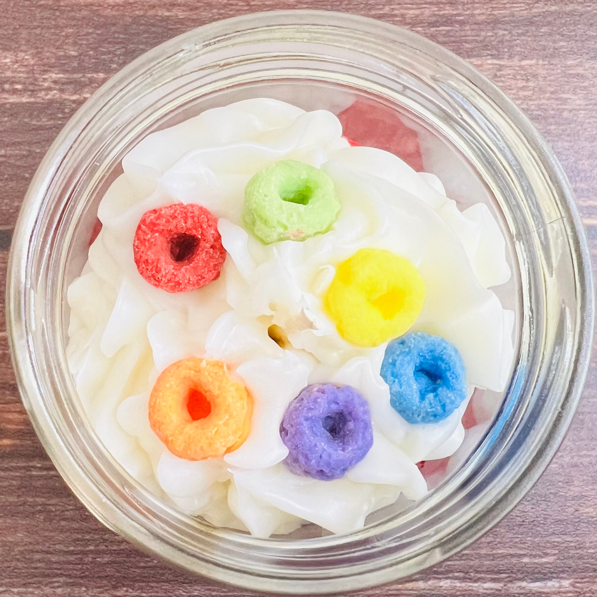 Toppings: Tiny fruit loops made of wax!